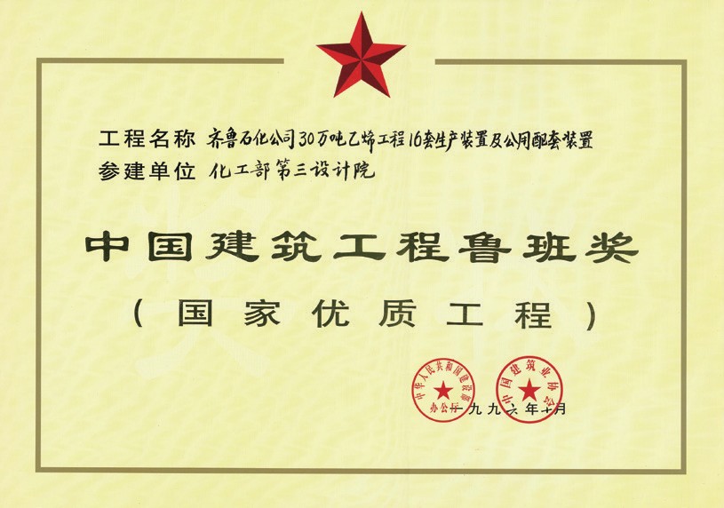 化三院承接齐鲁石化公司乙烯工程污水处理厂项目设计工作并试行承包制。项目于1984年4月开工建设,1987年9月建成投产,获得化学工业部优秀工程设计二等奖。1996年9月,齐鲁石化公司30万吨乙烯工程16套生产装置及公用配套装置荣获中国建筑工程鲁班奖(国家优质工程)。