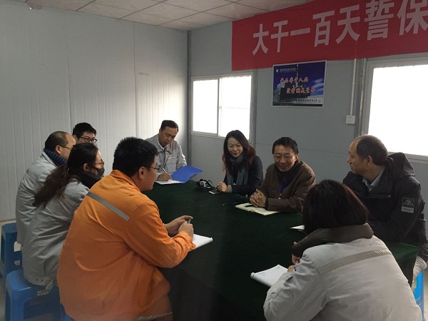 在现场会议室里,桂长田同项目部现场员工亲切交谈,询问了职工工作、学习、业余生活等方面的情况,要求项目部做好员工的后勤保障工作,为员工创造一个良好的休息、生活环境,确保员工吃得好、住得暖、睡得香。桂长田对确保项目稳步推进提出了几点要求:一是要高度重视项目安全施工,在重大施工方案和各项管控措施上坚持高标准、严要求,确保安全;二是要认真梳理项目施工尾项、材料缺件,编制详细的项目尾项计划,高质量完成中交工作;三是要树立精品意识,抓好队伍管理,严格执行进度计划,展示东华科技工程管理水平,为承接业主第二、第三个项目打下基础;四是要求项目部切实关心职工生活,调动和发挥好职工的积极性,组织有意义的娱乐活动。