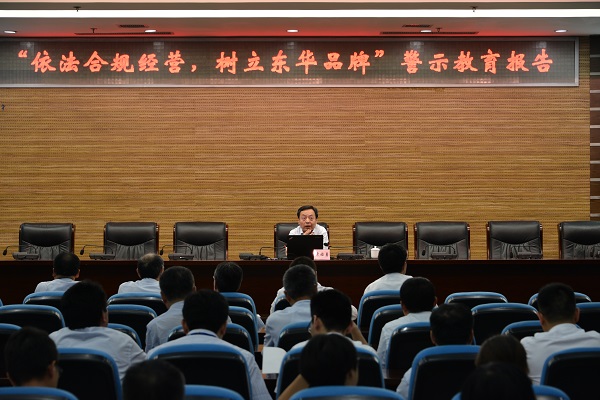 会上,公司党委副书记、纪委书记袁经勇作了《破除金钱开道,依法合规经营,树立东华品牌》的专题警示教育报告,公司市场管理部、项目管理部、采购部等部门人员共计50余人参加了本次会议。