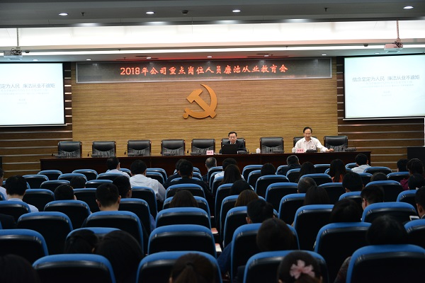 根据“反腐倡廉宣传教育月”活动安排,公司于5月10日下午3点在A楼报告厅召开2018年重点岗位人员廉洁从业教育会。会议由公司纪委副书记、纪检监察室主任刘保成主持,公司党委副书记、纪委书记袁经勇作了《信念坚定为人民,廉洁从业不逾矩》的专题讲座。公司物资采购、施工分包、项目管理、市场管理、人力资源、财务、党群工作部等部门约150人参加了本次教育会。