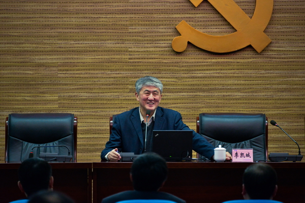 2018年2月27日下午,由公司党委发起,党群工作部、党委办公室、党委组织部联合组织筹办的东华党校大讲堂在A楼报告厅正式开讲。受公司党委邀请,开国上将李克农之孙、原总参政治部大校李凯城同志专程为东华党校大讲堂第一讲——《将学习宣贯党的十九大精神引向深入:中国共产党的管理创新》,做了一场十分精彩的报告。中共合肥市委组织部领导、公司领导、中层干部、全体党员、员工共计500余人参加了报告会。